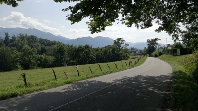 In Albi doen we gauw een paar boodschappen bij de Casino Géant en dan vatten we definitief de reis aan… We beginnen met een stukje snelweg, richting Toulouse, tot we moeten betalen (daar houden we niet van, hihi). Vanaf dan rijden we uitsluitend over routes départementales. Het leuke is dat we iets voorbij Toulouse de D632 oppikken en die volgen we helemaal tot Tarbes. Het landschap is nergens spectaculair, maar hier en daar zeker mooi te noemen. Vooral in het departement Gers, vinden wij, waar veel zonnebloemvelden zijn.