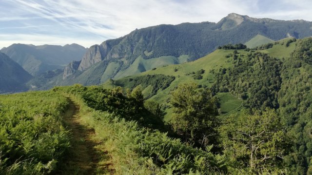 We hobbelen met onze trouwe vierwieler van de Col de Berghout terug naar de Col de Houratate en maken nog een derde wandelingetje. Een prachtige weg loopt over de kam. De jongere dame, die we met de auto hadden ingehaald, haalt ons nu zelf weer in. Wat een gezelligheid!