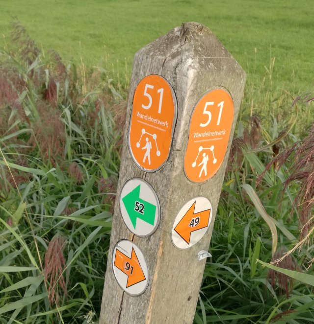 In Noord-Holland wordt sinds enige jaren hard gewerkt om een wandelnetwerk a.h.v. knooppunten aan te leggen. Ik volg vandaag de oranje pijltjes. Ik ben gestart bij knooppunt 91 en zal vervolgens de knooppunten 51, 49, 10, 12 en 17 aandoen om weer te eindigen bij 91.