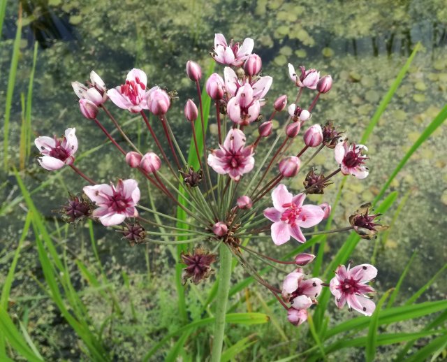 In de sloot en langs de kant van de weg staan mooie bloemen.