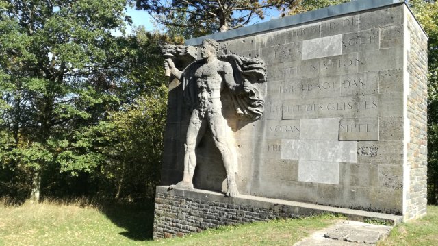 Het is een van de grootste complexen die Nazi Duitsland heeft voortgebracht… Een deel lijkt nu leeg te staan maar er is o.a. een Congrescentrum in ondergebracht, een documentatiecentrum over het nationaal socialisme enz. We eten er een bockwurst mit pommes en drinken er een Eifeler Landbier bij (gebrouwen in Gemünd).