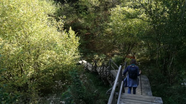 Na 6 km lopen bereiken we de Viktor-Neele-Brücke die over het meer is gespannen. Aan de overkant gaat de weg steil omhoog naar Vogelsang.