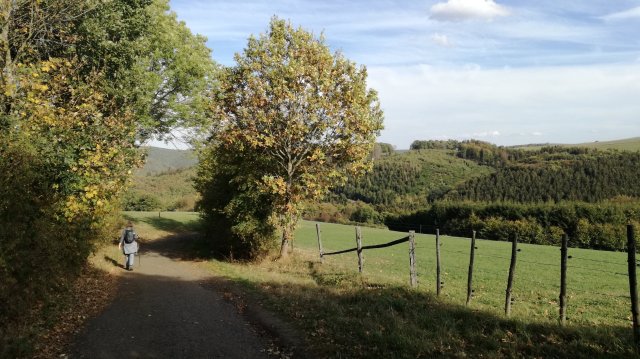 Voorbij Morsbach verlaten we de Eifelsteig en vanaf dat moment (nog 6 km te gaan) komen we niemand meer tegen. En de route? Prachtig!