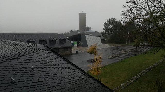 Met de ruitenwissers in de actieve stand rijden we naar Vogelsang IP (Internationaler Platz). In dit natte, donkere weer ziet het er hier vooral erg naargeestig uit…