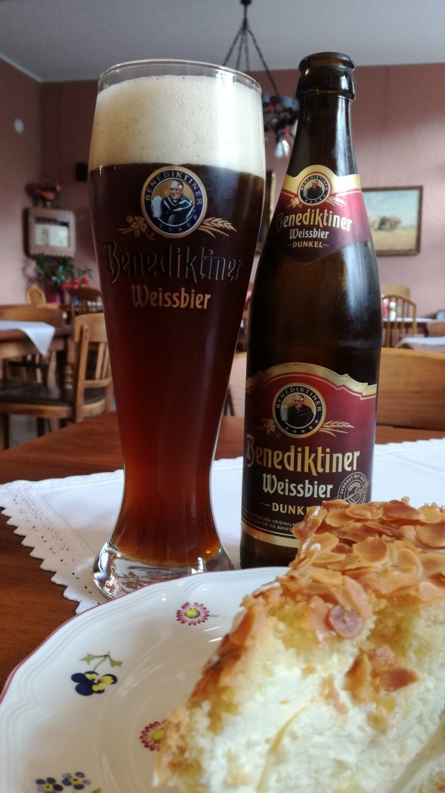 In het Hunolsteiner Bauernhofcafé nemen we even rust onder het genot van een biertje en een stuk hausgemachte torte.