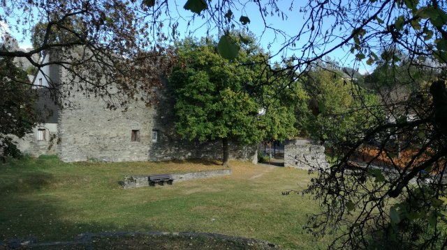 Daarna gaat de route op het dorp Hunolstein af, met zijn Felsen en zijn burchtruïne. Altijd boeiend, de geschiedenis van zo’n dorp. Ooit was dit een importante plek, wat rest is een slaperig boerendorpje…