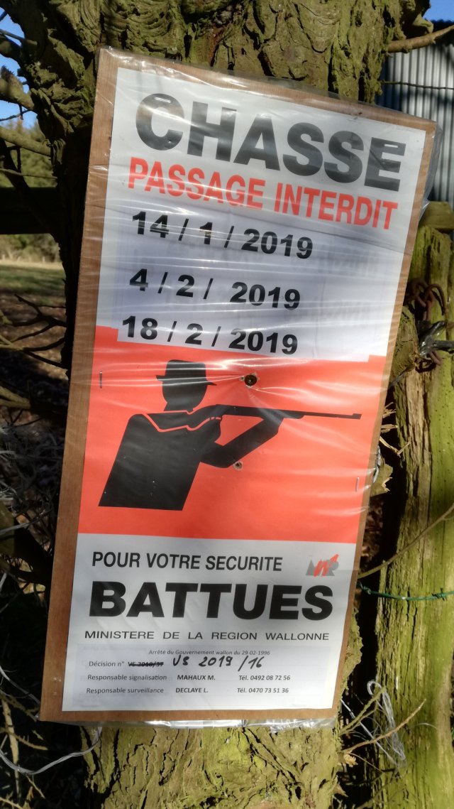 Terwijl we de bosrand naderen, zien we van verschillende kanten jagers komen aanlopen. Ik knoop een praatje aan, de jacht is voorbij, niks geschoten, we kunnen doorlopen. Yess! In een ander perceel bos rechts van ons horen we honden blaffen en de jachthoorn galmen. Daar wordt de jacht ook afgeblazen, zien we even later…