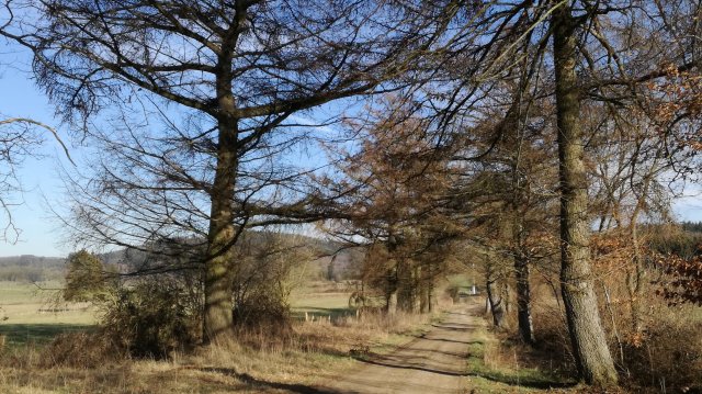 Op mijn gemak kuier ik de heuvel achter ons huis op, de beide dames staan op me te wachten bij de glascontainers. De weg voert ons over de heuvelrug langzaam naar het dal van de Salm (Waalse naam: le Glain); aan weerszijden hebben we een panoramisch uitzicht… Ik blijf dit een van de mooiste veldwegen van de streek vinden.