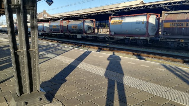 Boven het grensstation Roosendaal welft een blauwe hemelkoepel waarlangs een felwitte zon rustig ter kimme afdaalt. Slechts een handvol mensen hebben met mij de reis tot Roosendaal volbracht. Ik loop naar de Overstapzuil en check met mijn OV-chipkaart in bij de Nederlandse Spoorwegen. Het geluid van voetstappen sterft weg, ik heb de perrons zowat voor mij alleen. Er waait een zeer dun noordoosten windje. Ik ben blij met mijn sjaal en mijn winterjas!