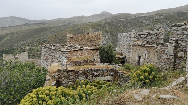 We rijden verder naar Vathia, parkeren de auto onderaan het dorp en klimmen langs weinig gebruikte paadjes omhoog tot we in de oude steegjes terecht komen. De meeste torens staan hier nog te vervallen, alleen aan de oostzijde van het dorp is een aantal huizen gerestaureerd en bewoond.