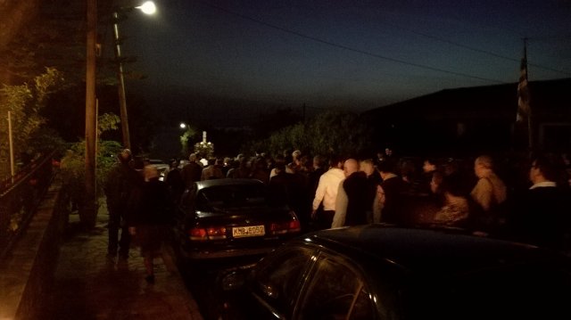 Het is de zaterdag voor Pasen. Gisteravond zijn we Kardamili nog ingegaan om naar de Goede Vrijdagprocessie te kijken. Vanuit de kerk klonken klaagzangen, versterkt door luidsprekers in de torens. Ik moet eerlijk zeggen dat het me deed denken aan Algerije, en de imams die oproepen tot het gebed. Erg sfeervol! Iets voor 21 uur gingen de klokken weer luiden en vervolgens liepen honderden mensen met kaarsjes in hun hand achter een bloemenschrijn-met-kruis aan.