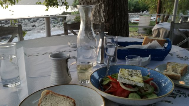 De dag is vol. We rijden terug naar de kust en parkeren in Kardamili. We zoeken een taverna op en eten met zicht op zee… Een aardig Nederlands stel dat we al eerder hebben ontmoet, schuift aan. Een gezellige avond… en we rijden veel later dan gepland terug naar het hotel.