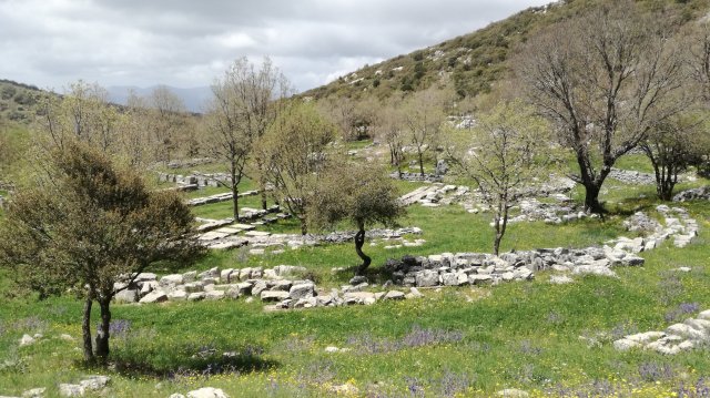 Andritsena ligt al vrij hoog maar we gaan nog hoger, terug naar 1130 meter waar een mooie archeologische site ligt. De tempel van Apollo Epicurius staat onder een enorme tent om hem te beschermen tegen de elementen. De ligging is buitengewoon fraai.