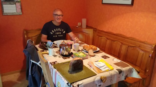 Om acht uur staan we bij de bakker in de kleine Edeka supermarkt in Daleiden. De verse broodjes zijn nog niet klaar, we moeten enkele minuten wachten. De rij kooplustigen zwelt aan… Niemand moppert, integendeel er worden wat grapjes gemaakt, in het Duits en in het Nederlands (we zijn niet de enige buitenlanders die Himmelfart in de Südeifel doorbrengen). Terwijl ik wacht doet Barney de overige boodschapjes en dan komen we in de rij bij de kassa te staan. Ook daar gezelligheid troef!