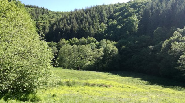 Na het ontbijt rijden we naar de Machtemesmühle, 3 km verderop in de vallei van de Irsen. We gooien onze rugzakken op onze rug en vertrekken goedgemutst: het zonnetje schijnt op ons bolletje en we hebben geen parasolletje. Het pad door het dal van de Mühlbach stijgt langzaam maar zeker. We vinden orchideeën! Dan volgt een steile klim naar het dorp Preischeid.