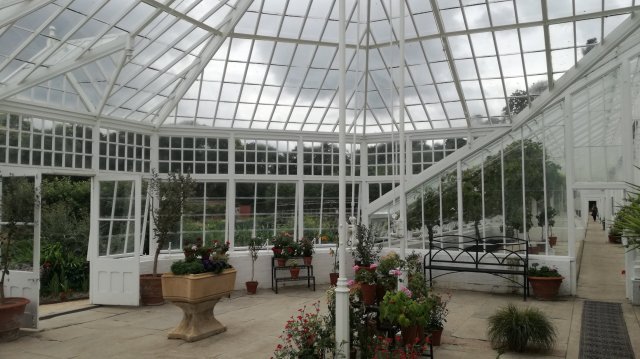 We nemen enige lekkernijen tot ons en ik slurp een grote bak koffie weg. Daarna bezoeken we de walled garden en de Victoriaanse kassen die prachtig zijn gerestaureerd.