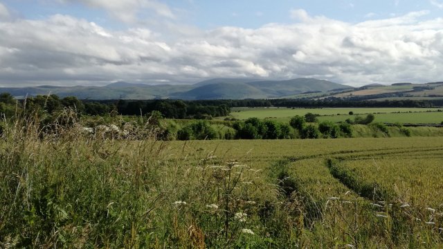 In de verte liggen de Cheviot Hills. Twee jaar geleden waren we hier op vakantie in een huisje aan de voet van deze zompige heuvels op de grens van Engeland en Schotland, vlakbij het dorpje Mindrum.
