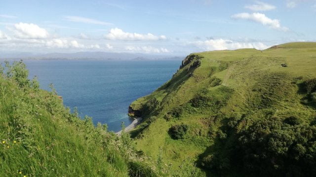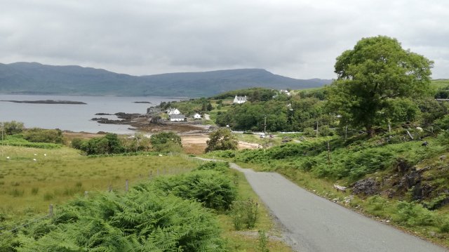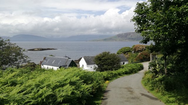 Na een cooked breakfast met zicht op zee rijden we naar Mallaig vanwaar we de ferry nemen naar Armadale op Skye. Na een heerlijke kop koffie in het zonnetje, rijden we Skye op. Al gauw verlaten we de hoofdweg. Een single track road voert ons via de dorpjes Tarskavaig en Tokavaig naar het gehucht Ord waar we in 2010 twee weken vakantie hielden in The Hirsel.