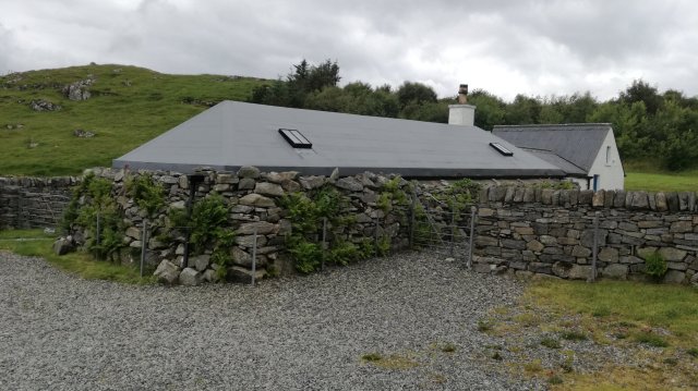 Tijdens ons korte wandelingetje komen we langs meerdere blackhouses. Sommige zijn herbouwd en worden verhuurd aan toeristen.