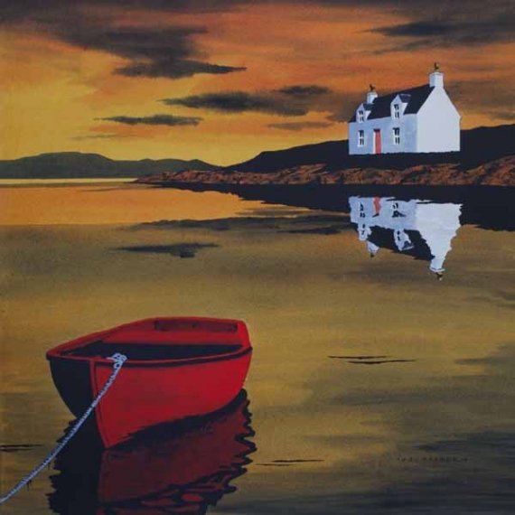 Na de lunch rijden we op ons gemakje noordwestwaarts, over de enige weg die noordwestwaarts gaat namelijk de de A858 (later de A857). We worden al jaren bekoord door de fraaie kaarten en kalenders met werk van ene Anthony Barber. De eenvoud van zijn werk en de prachtige kleuren spreken ons zeer aan!