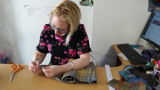 Vervolgens lopen we de Harris Tweed Shop in waar ik twee mooie sjaals koop waarvan er een ter plekke voor me wordt afgewerkt! Hoe leuk is dat!