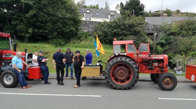 Aan de haven verzamelen de auto’s die straks de ferry naar Uig op Skye gaan nemen. In de rij staan ook enkele oude tractoren. Ik maak een praatje met de heren bestuurders: the boys zijn vorige week vanuit Aberdeenshire vertrokken voor een rondrit door Schotland. Over twee of drie dagen willen ze weer thuis zijn. Geweldig!