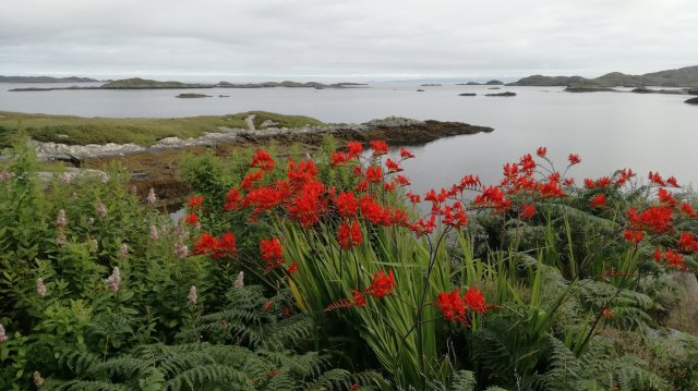 We verlaten Tarbert en rijden langs de kust over de Golden Road richting ons huisje. Onderweg stoppen we bij de prachtig gelegen Ardbuidhe Cottage Gallery. We vinden dat Moira Fulton heel mooi de sfeer van de westkust van Harris kan vastleggen!