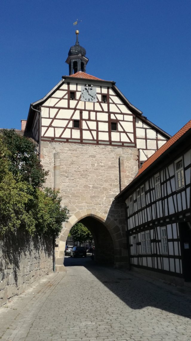 We rijden naar het stadje Heldburg. De zon staat te stralen aan een strakblauwe lucht. We lijken wel alleen op de wereld te zijn: zó rustig op de weg! Onderweg zien we overal affiches: Middeleeuwse feesten in Heldburg op 14 en 15 september. We bereiden ons mentaal voor op héél veel volk, maar dat lijkt ernstig mee te vallen: we lopen door Heldburg en we zien er geen levende ziel! Wel veel mooie (vakwerk)huizen.