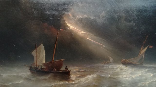 Oordeel zelf: dit thema nodigt uit tot een kaleidoscoop aan stijlen… Leuk is bovendien dat op de muren bij de schilderijen allerlei dichtregels en korte gedichten staan m.b.t. het weer. De catalogus is mooi verzorgd en bevat ook gedichten, én is betaalbaar, wat mij deed besluiten mijn boekenkast aan te vullen met een exemplaar…