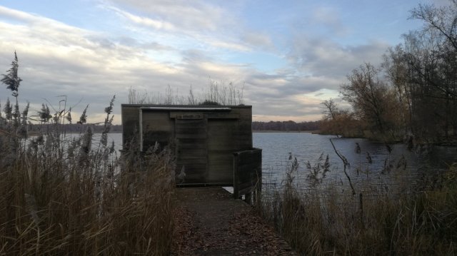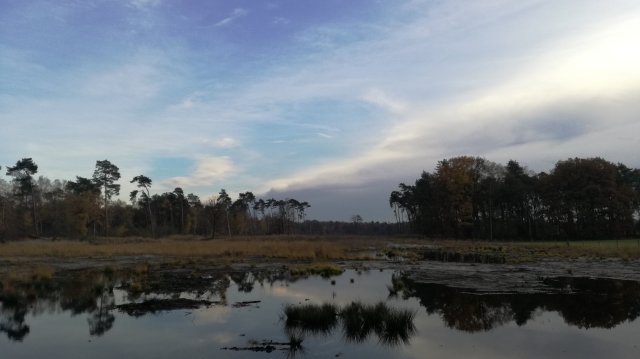 Ze hebben vandaag een 30-tal evers omgelegd en ze stoppen ermee. We krijgen toestemming om langs De Ronde Put (een meer) en door het bos terug naar de abdij te lopen. We zijn de enige wandelaars in het hele gebied…