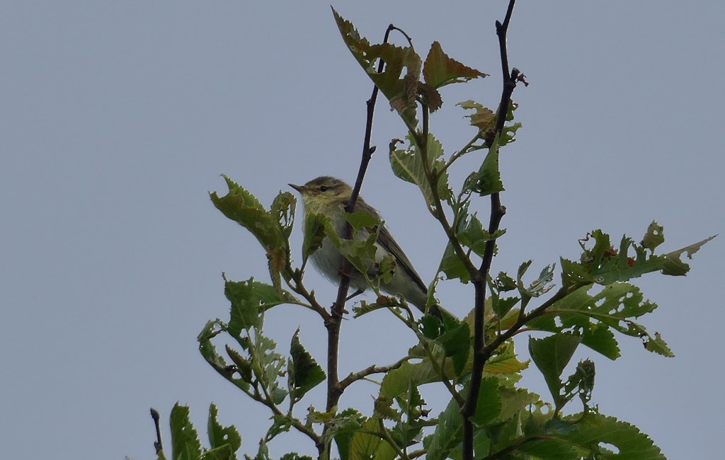 We horen allerlei vogeltjes zingen en af en toe schiet er eentje langs om zich dan onzichtbaar te maken in het dichte struikgewas aan weerszijden van het pad. Een enkeling zet zich soms toch op de uitkijk in de top van boom of struik: hét moment om er de kijker op te richten om te bepalen met welke gevederde vriend we hier te maken hebben… Een enkele enkeling zit dichtbij genoeg om er een foto aan te wagen.