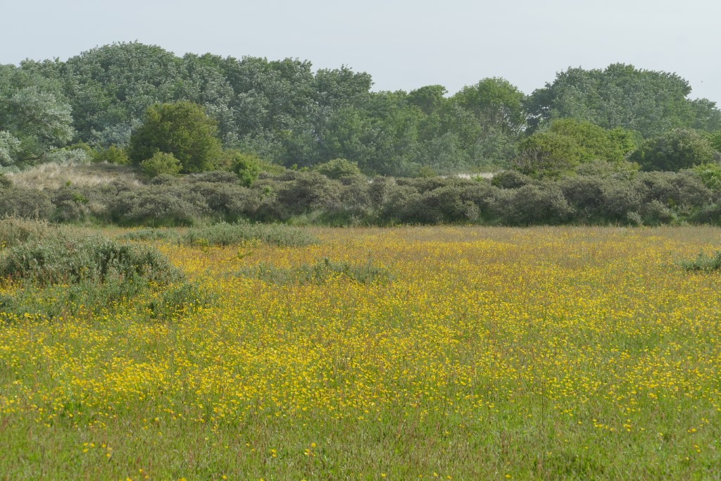 Tussen de oude duinakkertjes door wandelen we over smalle paadjes terug richting het parkeerterrein. Het valt ons de afgelopen week op dat sinds de lockdown wat is versoepeld, de mensen weer andere dingen gaan doen dan wandelen. Wij vinden het in elk geval wat rustiger geworden… en dat is prima!