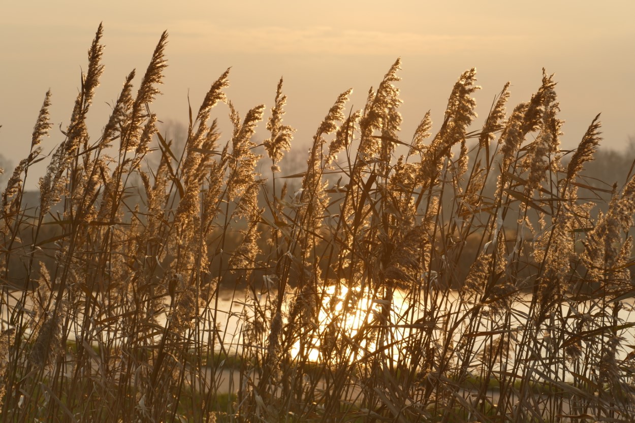 Langs de Kleimeer hebben zich op meerdere plaatsen fotografen geïnstalleerd, de camera’s met forse lenzen naar het uitspansel boven het riet gericht. Rond half vijf stromen uit alle windrichtingen zwermen spreeuwen samen die in het riet komen overnachten. Soms voeren ze hun formidabele balletten op, maar vanmiddag valt het wat tegen… En terwijl de laatste kleurzwemen uit de lucht verdwijnen, dalen duisternis en rust hand in hand neer over het land…