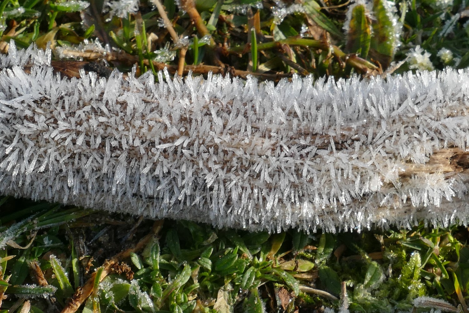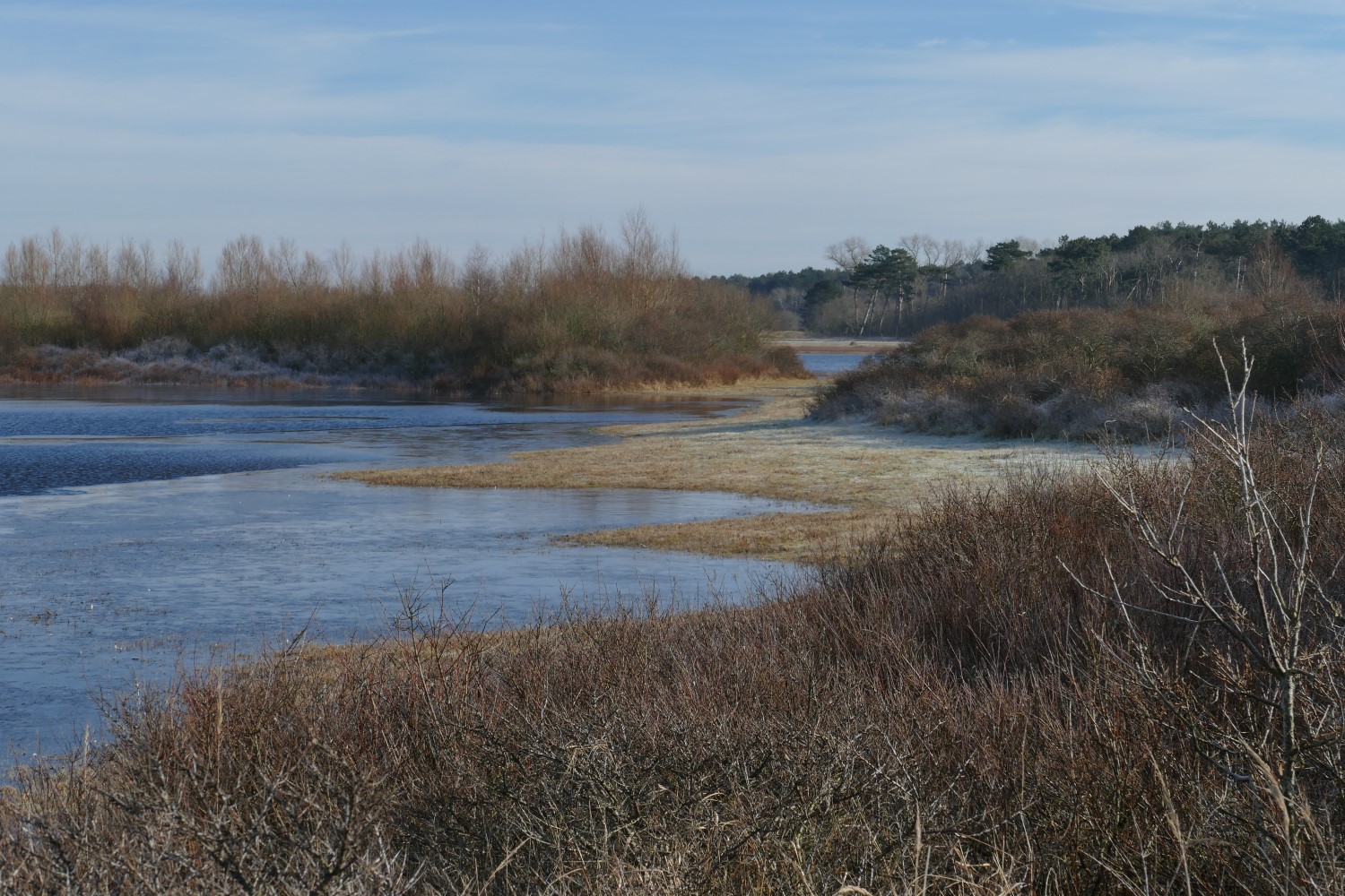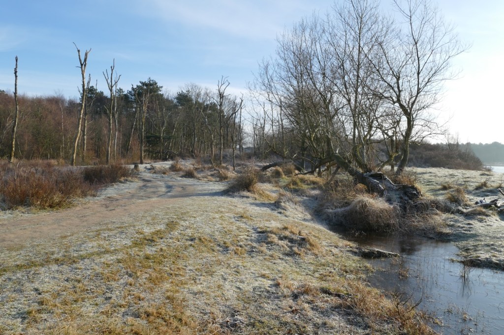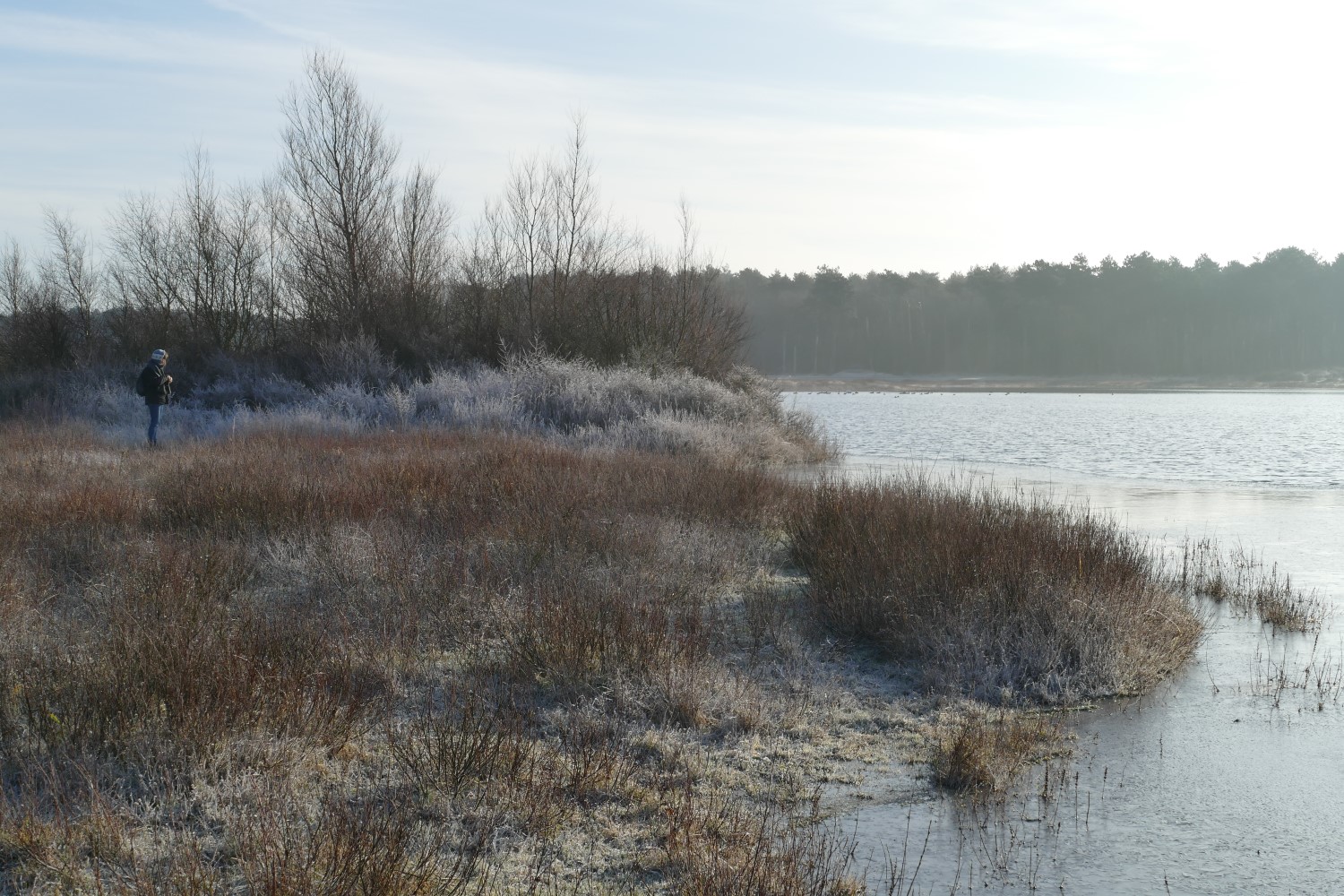 Vooral in het begin van de wandeling is het overal wit berijpt. Op het meer in het Weitje van Brasser ligt, daar waar de wind niet waait, een dun vliesje ijs… Ook als je naar de kleine dingen kijkt, de details, dan zie je hoe prachtig de natuur is… Laten we er met zijn allen a.u.b. héél zuinig op zijn!!