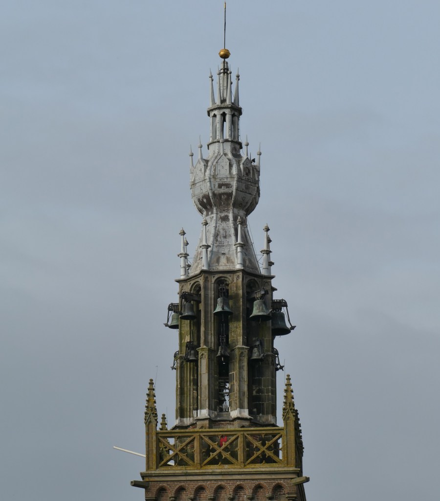 We lopen de stad in over de Kwakelbrug en hebben een mooi zicht op de ranke Speeltoren met het opvallende carillon waarvan een aantal klokken aan de buitenkant hangen. Vanaf de brug zien we enkele fraaie theekoepels.