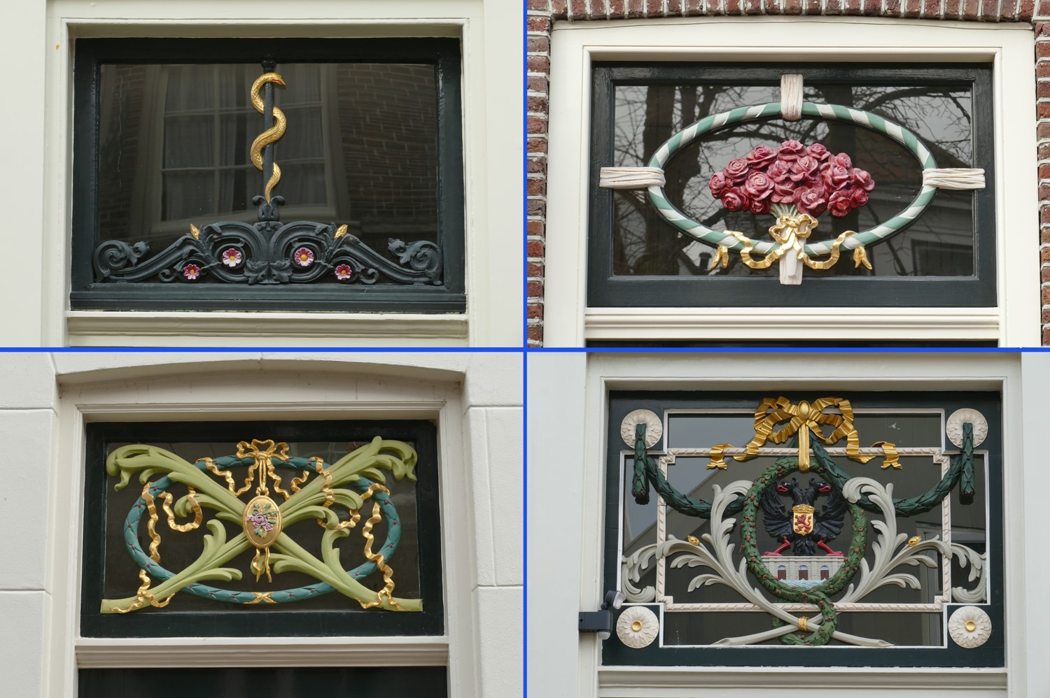 Terwijl we door de straten kuieren, vallen ons de vele mooie bovenlichten op die boven statige voordeuren prijken. Alleen daarvan al zou je een reportage kunnen maken… Ik beperkt met tot onderstaande keuze.