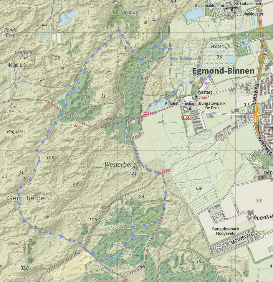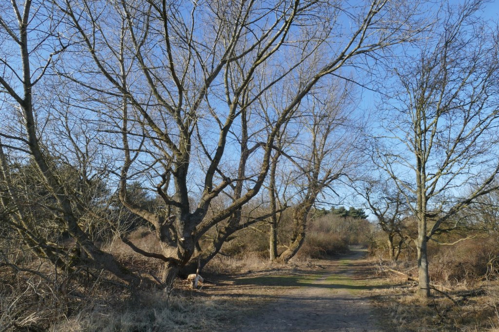 Zo heet de wandeling die we aan het eind van deze mooie zaterdag gaan maken, vanaf het parkeerterrein bij de Westert (Egmond-Binnen). Het eerste deel, dat ten noorden van de Middenweg ligt, kennen we. Maar voor het grootste deel gaan we paden betreden die helemaal nieuw zijn voor ons, en dat vind ik altijd leuk…