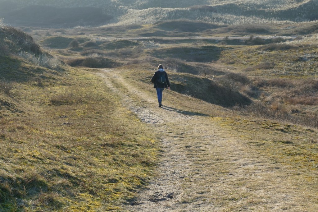 Na een grijze, koude start neemt de zon het over… De lucht evenwel blijft fris, dus van de fleece, de sjaal en de winddichte jas heb ik geen spijt. Hoe dan ook, de eerste dag van de meteorologische lente mag er dit jaar zijn! We parkeren aan het begin van de Zeeweg. “Wat doen we: noord of zuid?” We kiezen voor zuid en we hebben er achteraf geen spijt van. Het wordt een prachtige wandeling en – wat we heel bijzonder vinden – we ontmoeten amper andere wandelaars. We genieten dan ook met volle teugen!