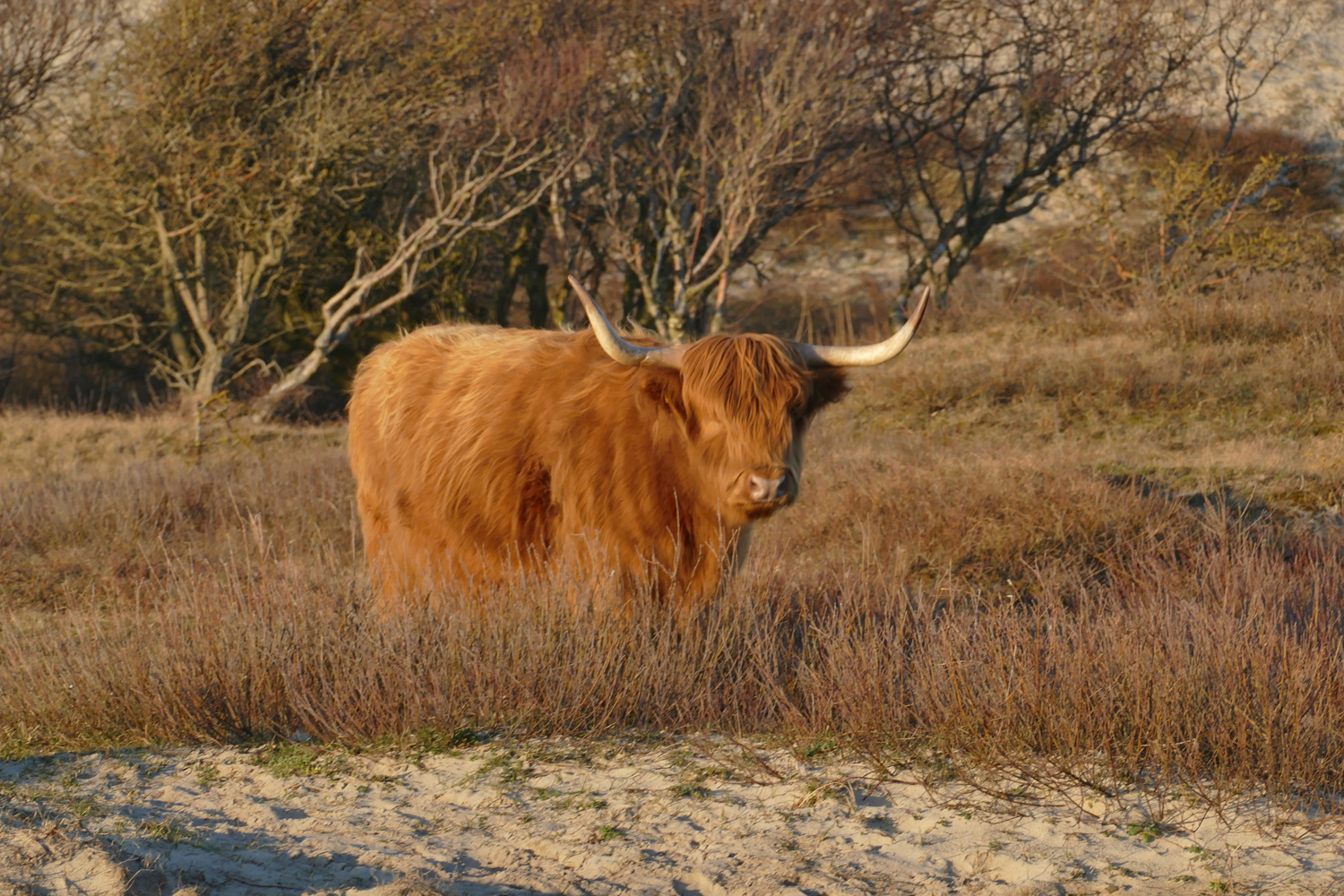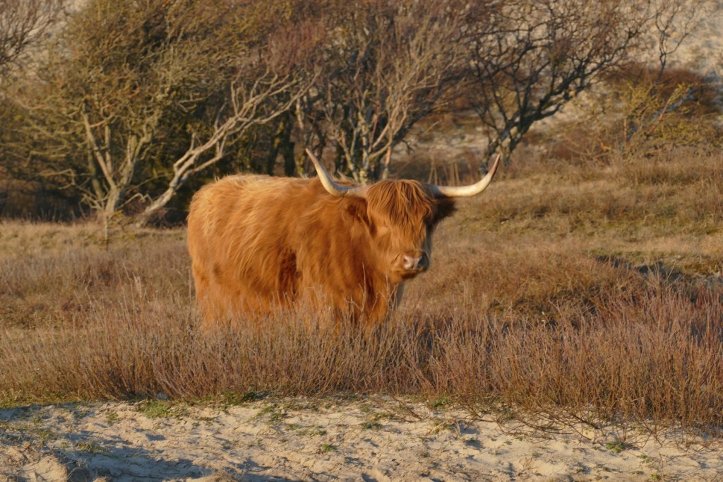 We lopen een paar honderd meter over het fietspad en nemen dan een vrij smal pad naar links. Het Nederlands Kustpad (LAW) loopt hier ook: etappe 9, van Egmond aan Zee naar Groet (en vice versa natuurlijk), dwars door de duinen… Hier kuiert een vrij grote kudde Schotse Hooglanders door het landschap. Het zijn en het blijven fotogenieke beesten met een hoog aaibaarheidsgehalte, al is het advies dat je afstand houdt, bij voorkeur zo’n 25 meter. Met een telelens haal je ze gemakkelijk wat dichter bij zonder dat je gevaar loopt.
