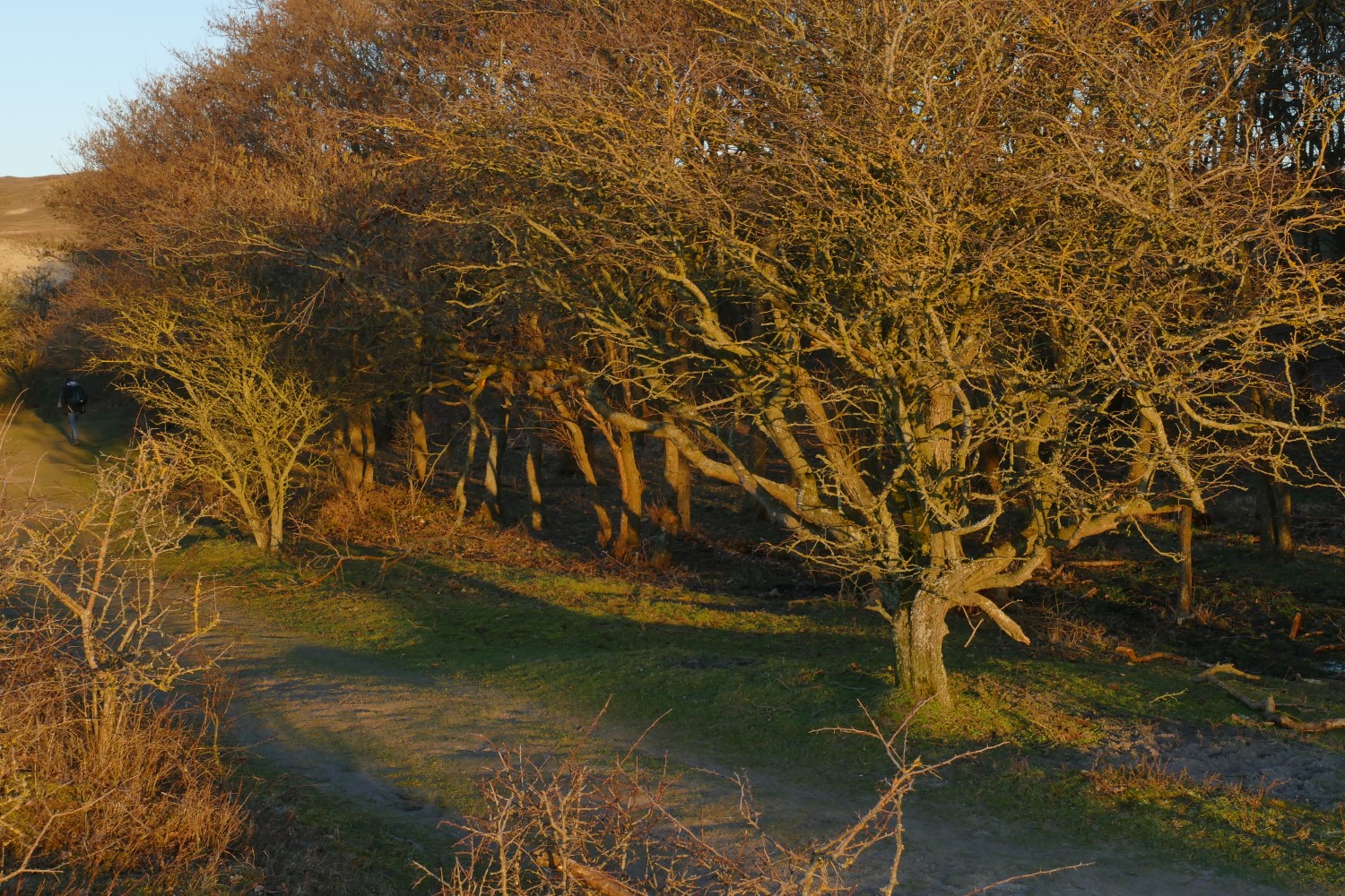 Het eerste deel van de wandeling gaat door bos. De wind en het klimaat hebben de bomen hier mede gevormd; gedurende de helft van het jaar zijn de loofbomen bladerloos en kun je je vergapen aan hun grillige vormen…