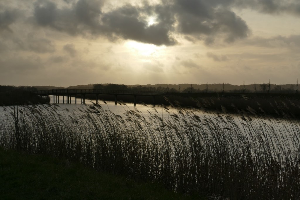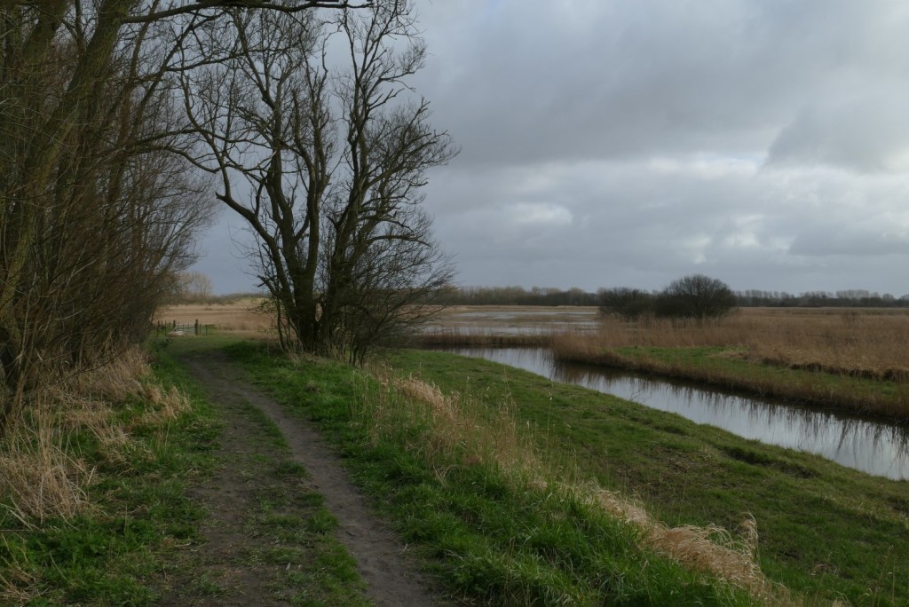 Deze eerste lentedag breng ik grotendeels binnen door, met het lezen en ordenen van brieven en kaartjes die ik tussen 2005 en 2016 aan mijn ouders stuurde. Ongelooflijk wat een mens geschreven heeft – en hoeveel een mens vergeet in de loop van de jaren… Aan het einde van de middag heb ik behoefte aan een frisse neus. Dus… naar het Geestmerambacht! Als ik kom aanrijden, breekt de zon heel even door! Mijn vader zou gezegd hebben: “Er zit tekening in de lucht, het wordt beter.” En inderdaad, af en toe piept het zonnetje door de wolken en dan is het net alsof er een spot wordt gericht op de Kleimeer – de kleuren lichten op!