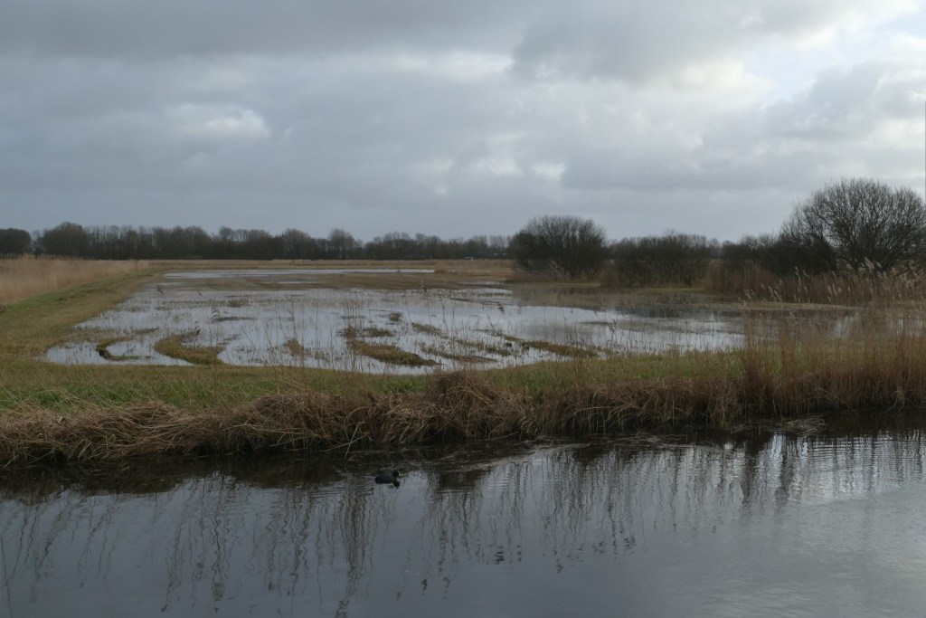 Het is rustig. En dan bedoel ik niet alleen dat er weinig mensen lopen, maar ook de ganzen laten zich veel minder horen dan gisteren. Op mijn gemakje kuier ik over het pad langs de Kleimeer. Ik zie speenkruid en klein hoefblad, bloemetjes dichtgevouwen vanwege de kou. Ik zie ook op twee plekken fluitenkruid in bloei staan – dat is vroeg!