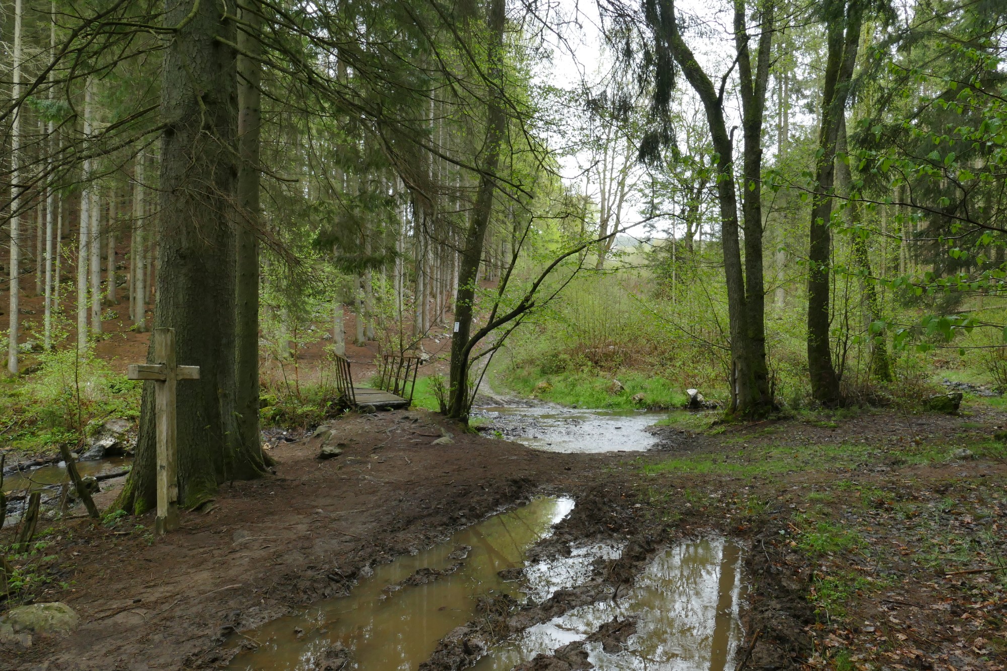 Ook vandaag staat er wisselvallig weer op het programma maar dat weerhoudt ons er niet van om er op uit te trekken. Dit is de enige dag dat we een klein stukje auto rijden… 3,5 km om precies te zijn. We parkeren bij de barbecue van de gemeente Trois-Ponts (bij Wanne), waar ik – nu bijna vier jaar geleden – samen met een groot aantal dierbare vrienden waaronder een paar leeftijdgenoten mijn 60ste jaardag vierde. Van hierboven heb je een groots uitzicht over de Salmvallei… We gaan een ommetje Wanne doen. Wanne is een vrij hoog gelegen dorp waar we in de 90’er jaren van de vorige eeuw een keer een huisje huurden. Het ligt op het plateau tussen Trois-Ponts en Stavelot.