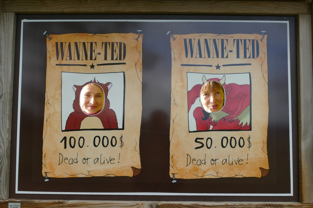 Naast de barbecue staat een bord: Wanne-ted! Blijkbaar worden deze twee obscure personen gezocht!? Ik heb geen idee wie het zijn of hoe ze heten 😂!