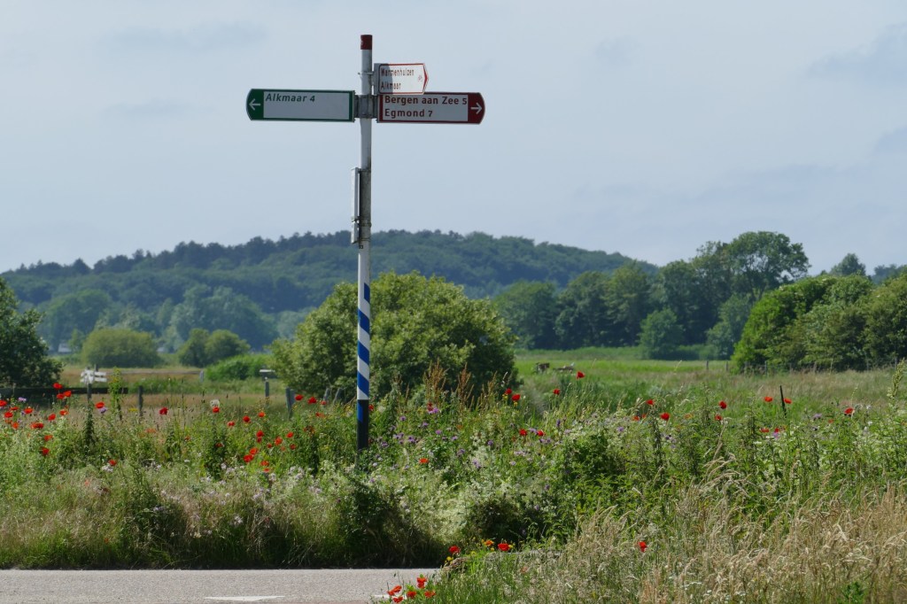 Ik kom uit op de Groeneweg die naar Alkmaar voert. Ik neem echter het fietspad dat parallel loopt aan de Nesdijk. De bermen zijn hier ingezaaid met vele, kleurige bloemen – wat een feest!