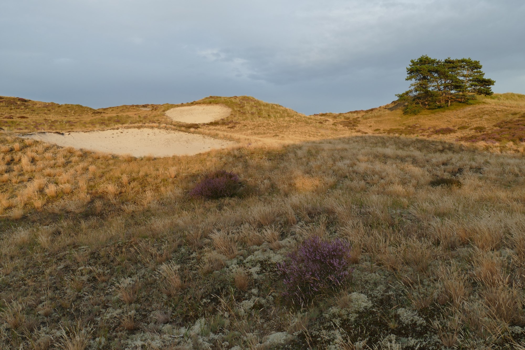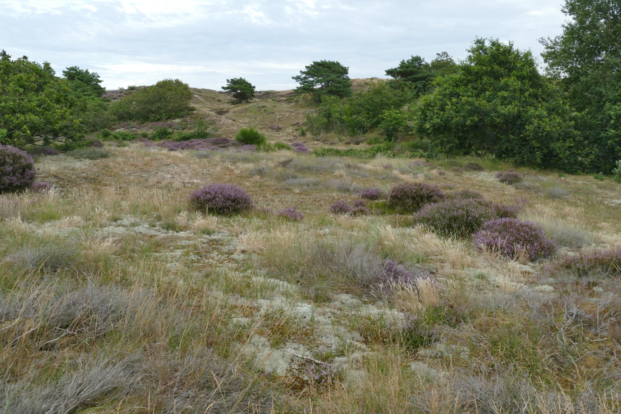 Het is zowat half augustus en dan begint de struikheide te bloeien. Dit is zeker ook een leuke tijd om de duinen in te trekken, vooral het Schoorls duingebied waar veel heidevelden zijn. Vrouwlief en ik parkeren onze bolide bij de Uilenvangerweg en stappen gezwind het avondlijk duin in. Helaas is de zon verdwenen achter het zoveelste wolkenveld dat deze redelijk zomerse donderdag komt verstoren…