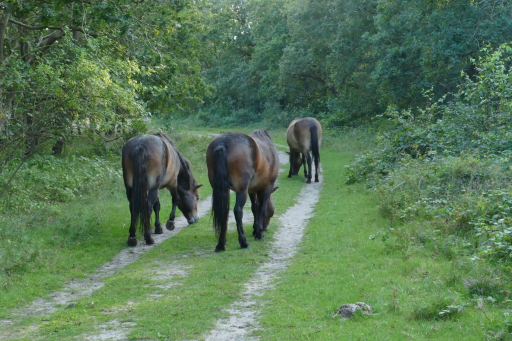 We zien aardig wat paardendrollen op het wandelpad liggen. Is het weer zo laat? Zijn er ruiters die zich weer eens niet aan de regels houden!? Echter, die gedachten moet ik terugnemen: o ja, er wonen Exmoor ponies in de duinen… dat was ik even vergeten!