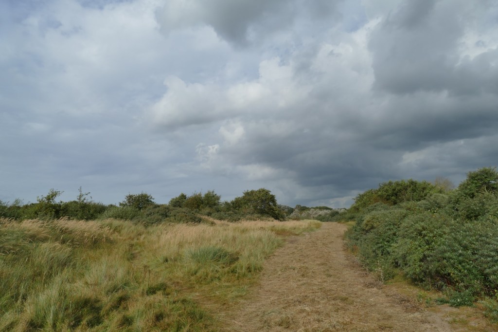 Zon weg, kleur weg… maar het blijft wel gewoon lekker wandelen. De thermometer stond kort na de middag op 20oC, en daar is nu echt nog 16oC of 17oC van over!