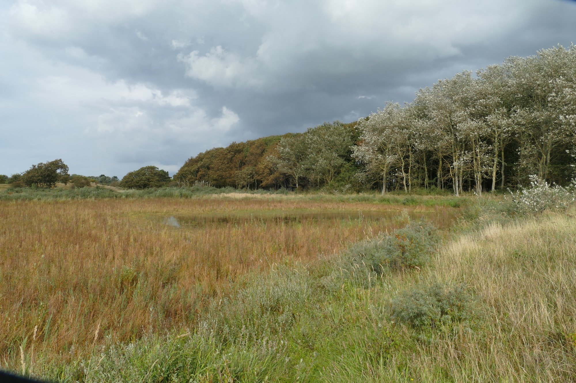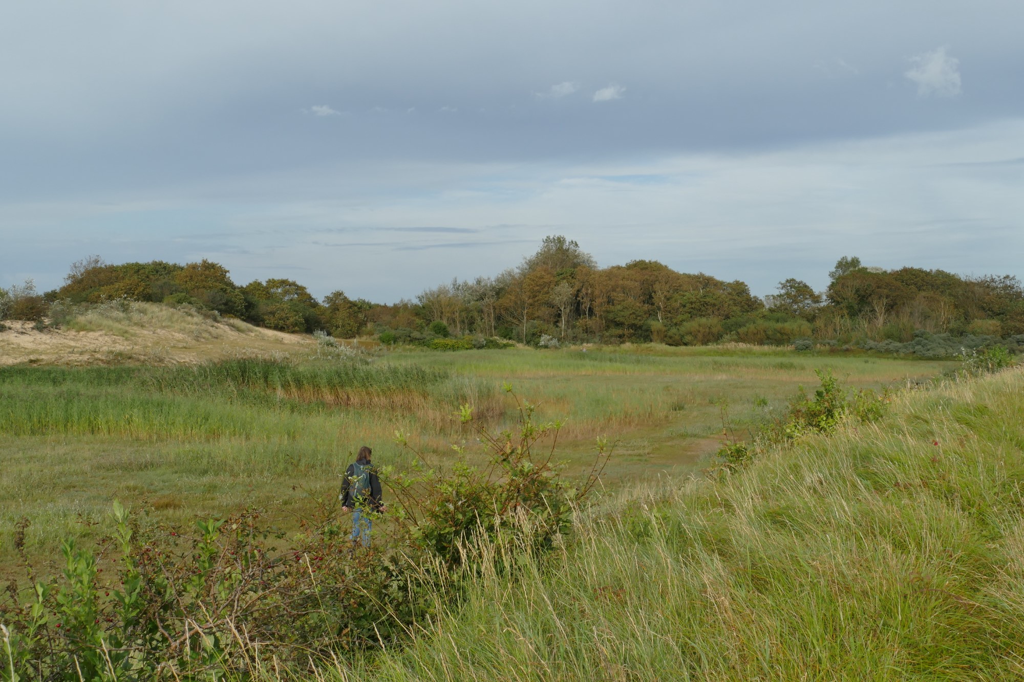 We parkeren de auto en stappen door het klaphekje het Noord-Hollands Duinreservaat in. Er ligt licht op het landschap, én er drijven dreigende wolken boven ons hoofd. Altijd een mooie combinatie!