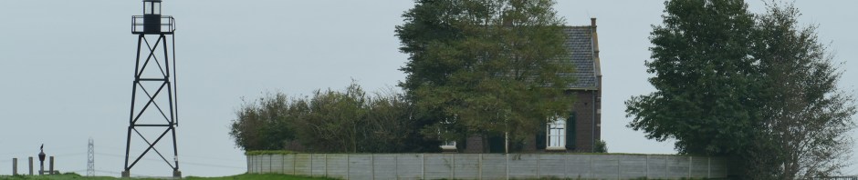 We steken de Oud Emmeloorderweg over en ronden de kop van Schokland. Aan onze rechterhand zien we al van ver een terp met daarop twee gebouwen een een lichtbaken. Die blijken aan de oude vluchthaven te staan…